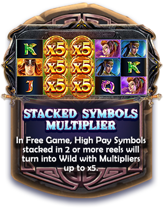Trong Vòng Quay Miễn Phí, Biểu tượng High Pay xếp chồng lên 2 hoặc nhiều cuộn sẽ biến thành Biểu tượng Wild với Bội số lên đến x5